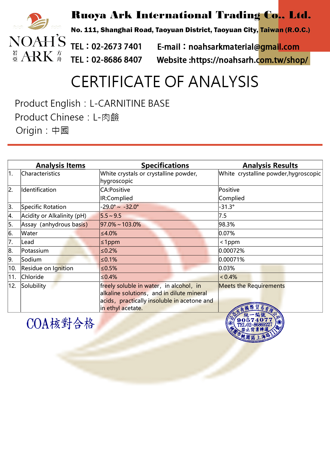 產地:中國 (L-肉酸 / L-肉鹼)、 比利時 (強化長鏈菊苣纖維)