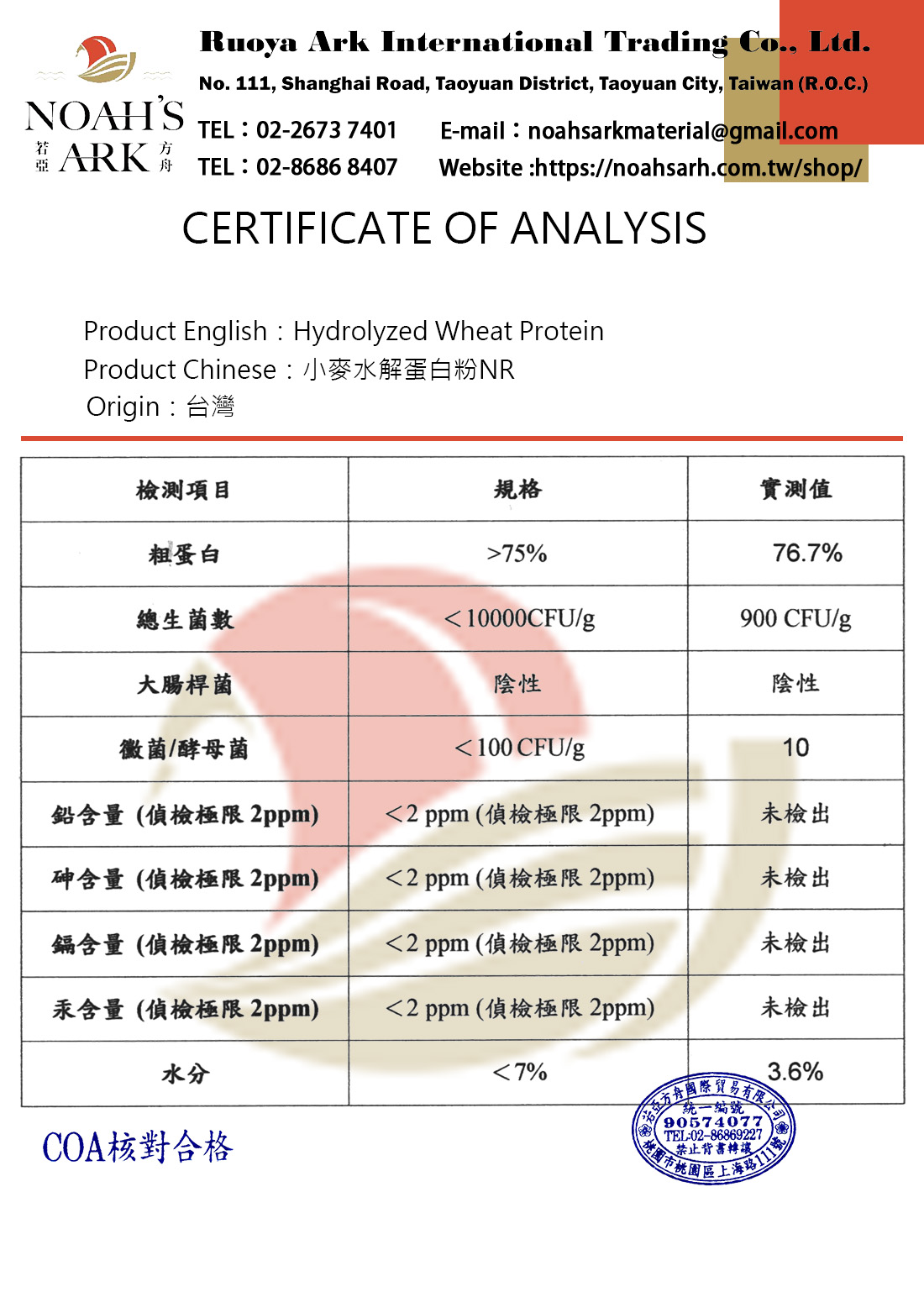 品名:小麥水解蛋白粉 (食品級)