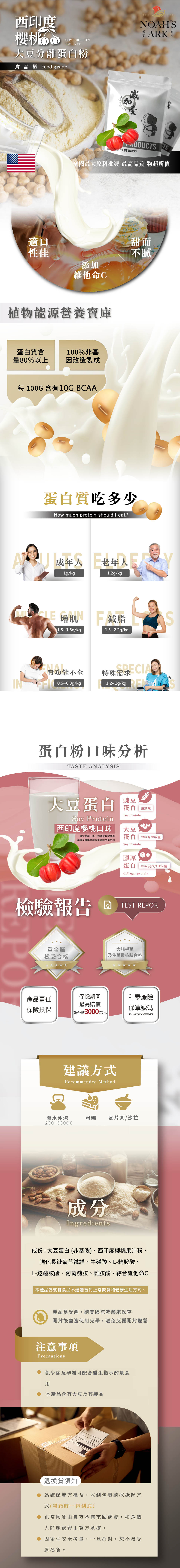 成份 : 大豆蛋白 (非基改)、西印度櫻桃果汁粉、強化長鏈菊苣纖維、牛磺酸、L-精胺酸、