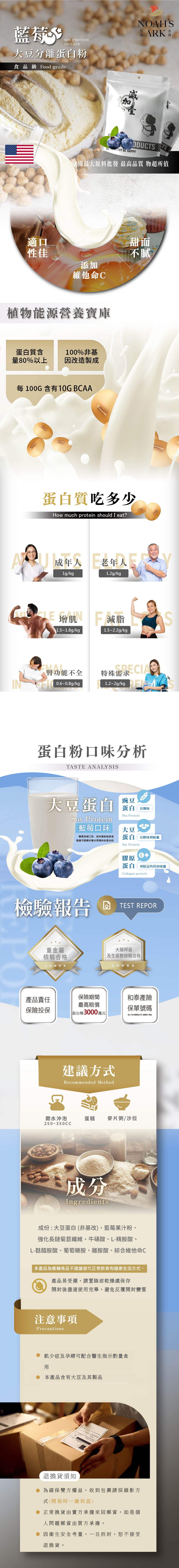 成份 : 大豆蛋白 (非基改)、藍莓果汁粉、強化長鏈菊苣纖維、牛磺酸、L-精胺酸、