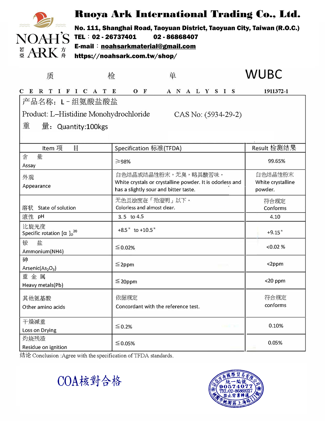 成分:鹽酸L-組織胺酸99.9%、強化長鏈菊苣纖維0.1%