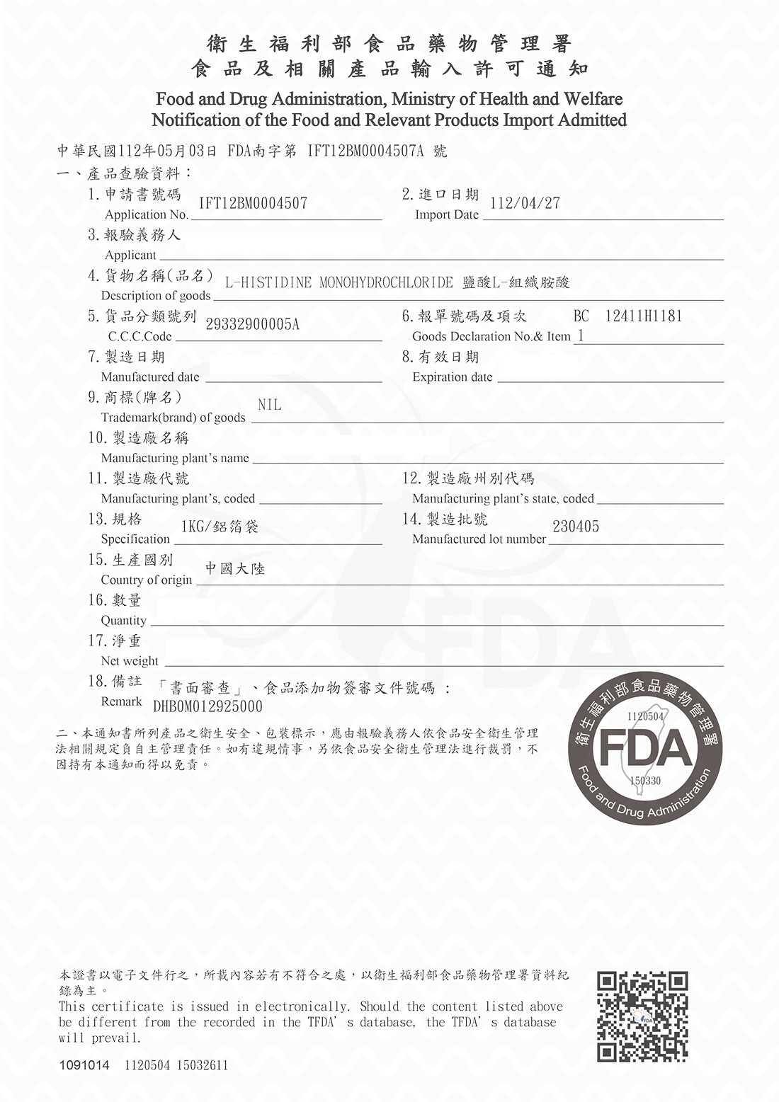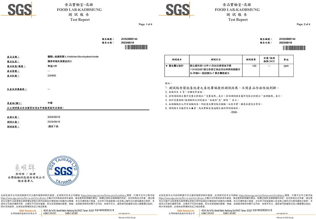 產地:中國(鹽酸L-組織胺酸)、比利時(強化長鏈菊苣纖維)