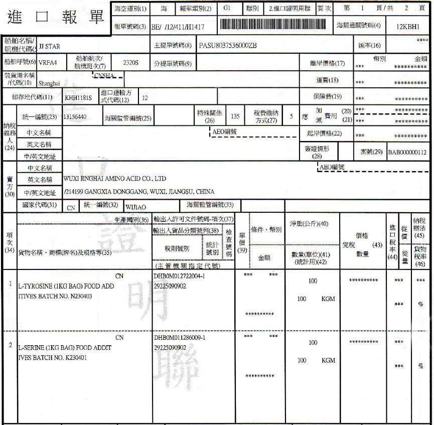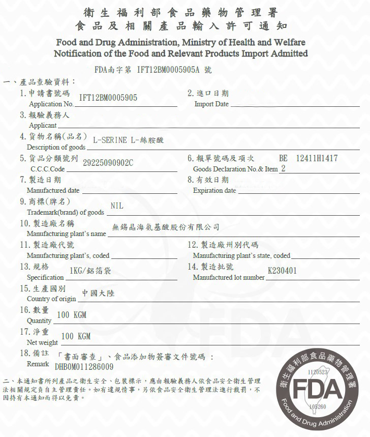 產地:中國(L-絲胺酸)、比利時(強化長鏈菊苣纖維)