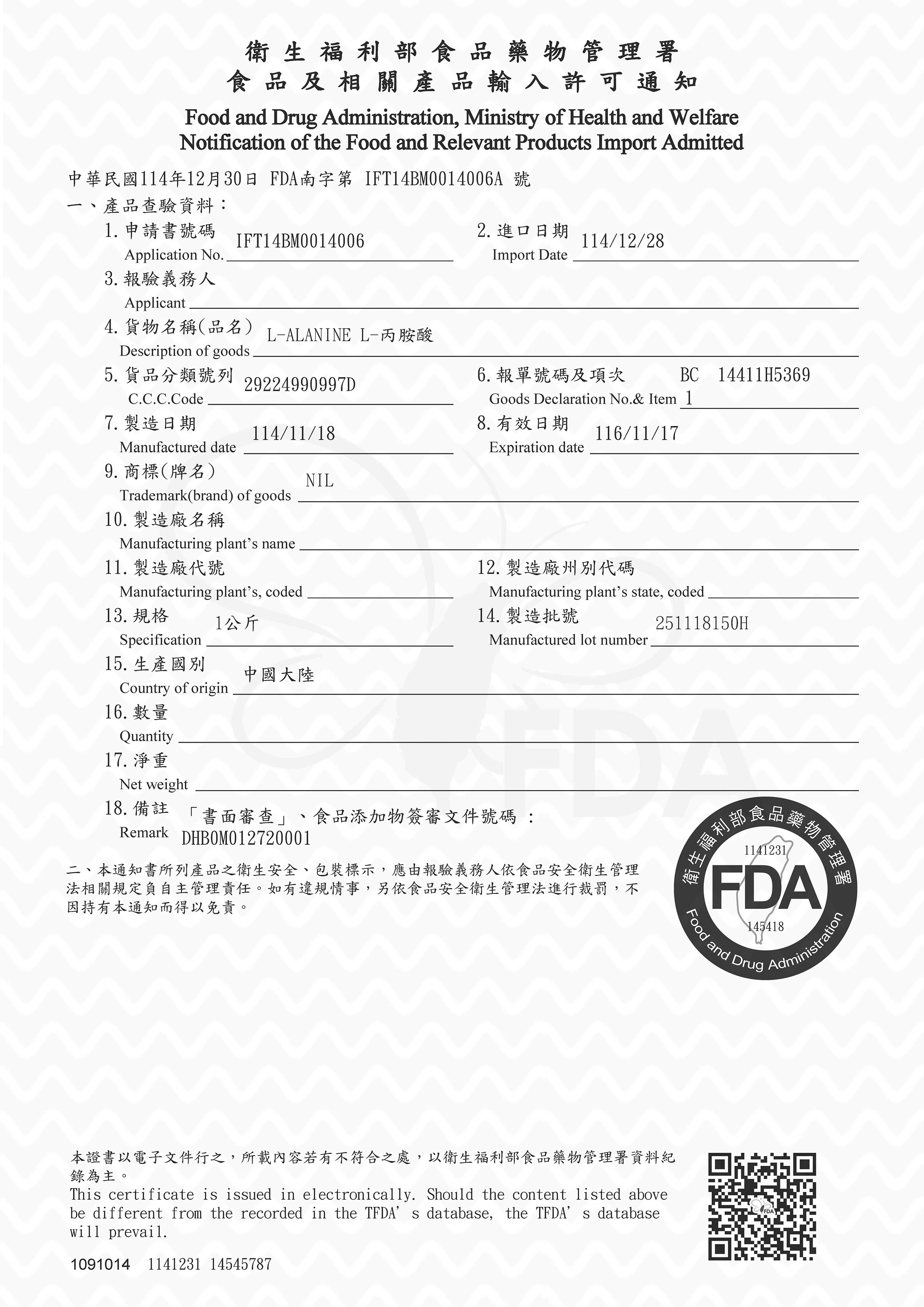 品名:L-丙胺酸 A