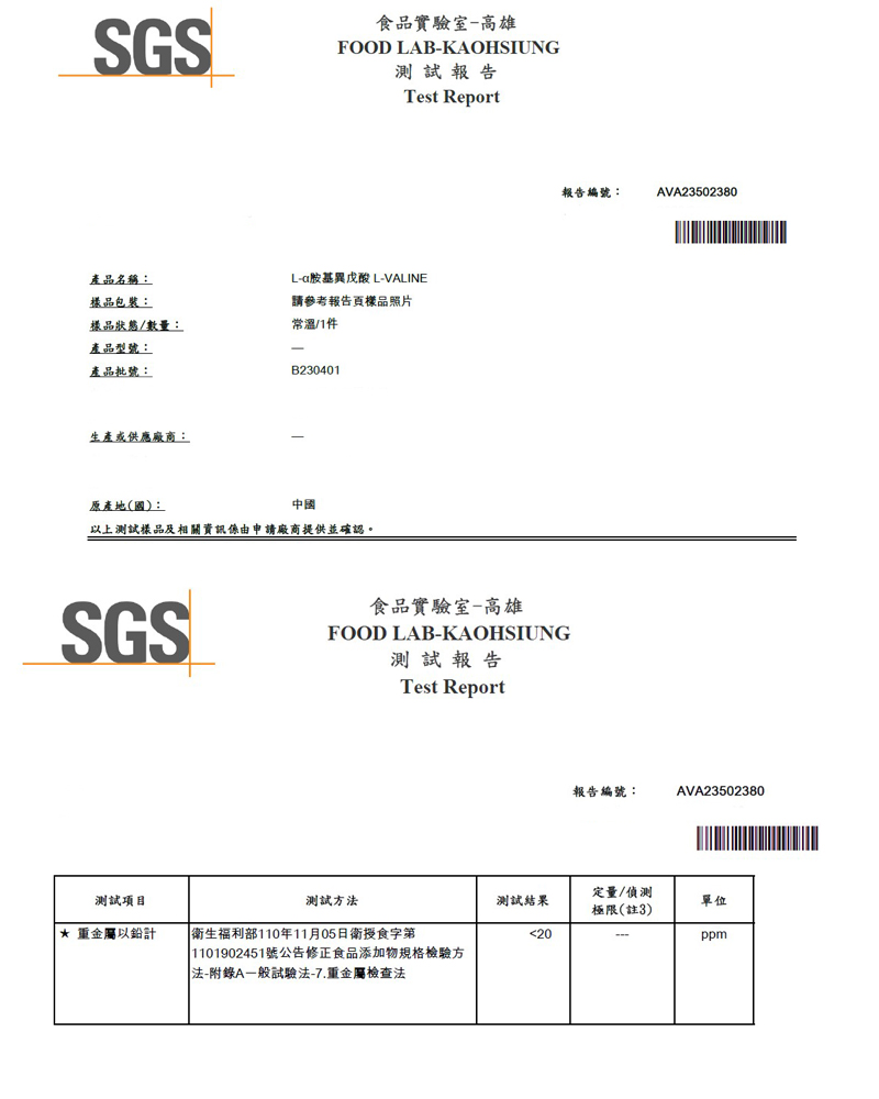 成分:100% L-α胺基異戊酸