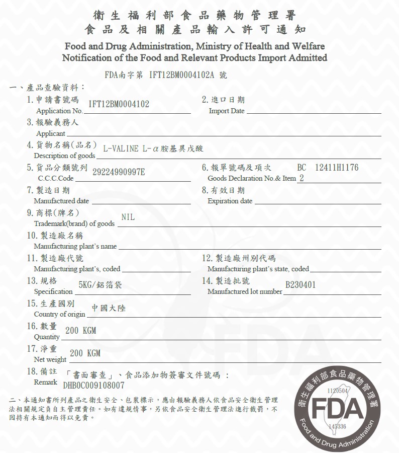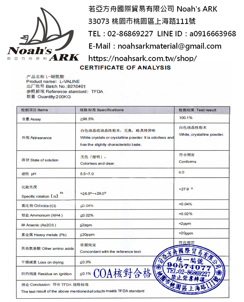 品名:L-α胺基異戊酸 A