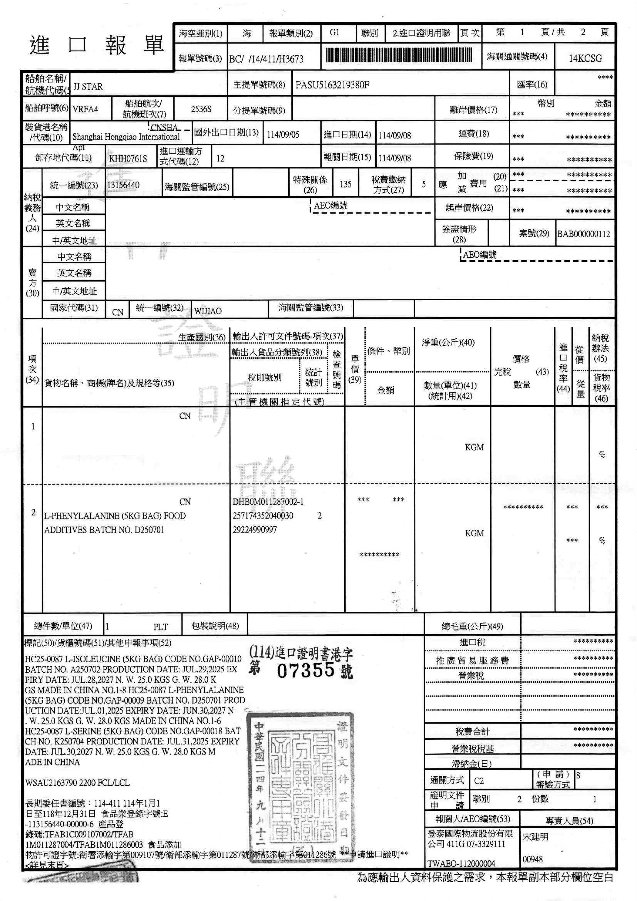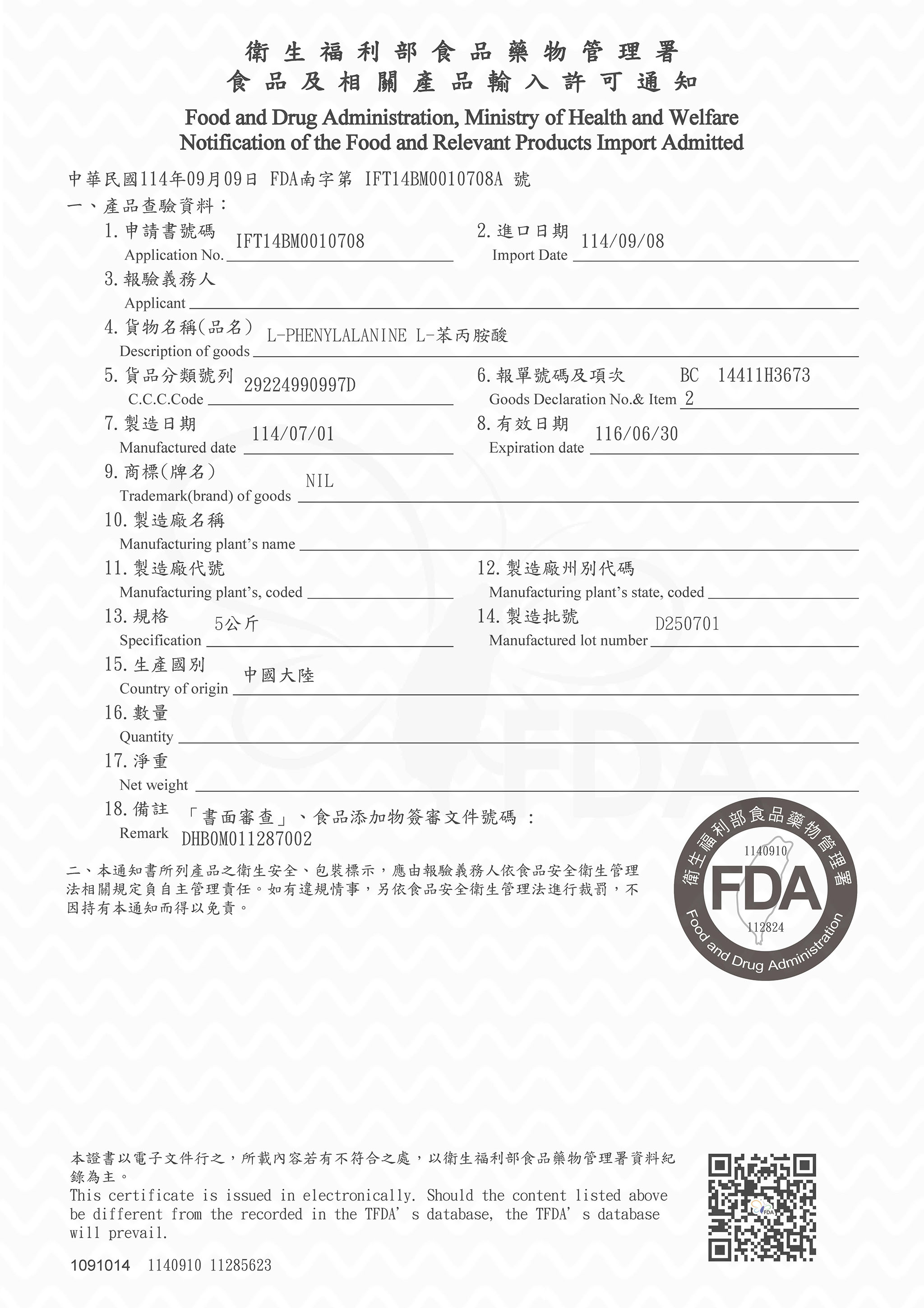 產地:中國(L-苯丙胺酸)、比利時(強化長鏈菊苣纖維)