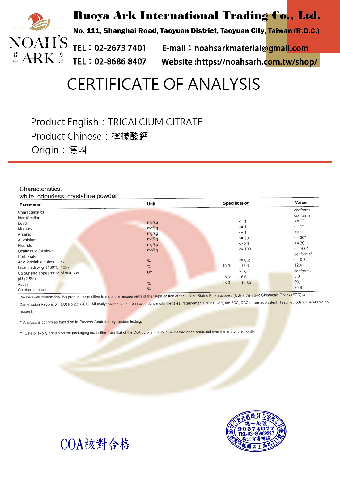 英文名:CALCIUM CITRATE (TRICALCIUM CITRATE)