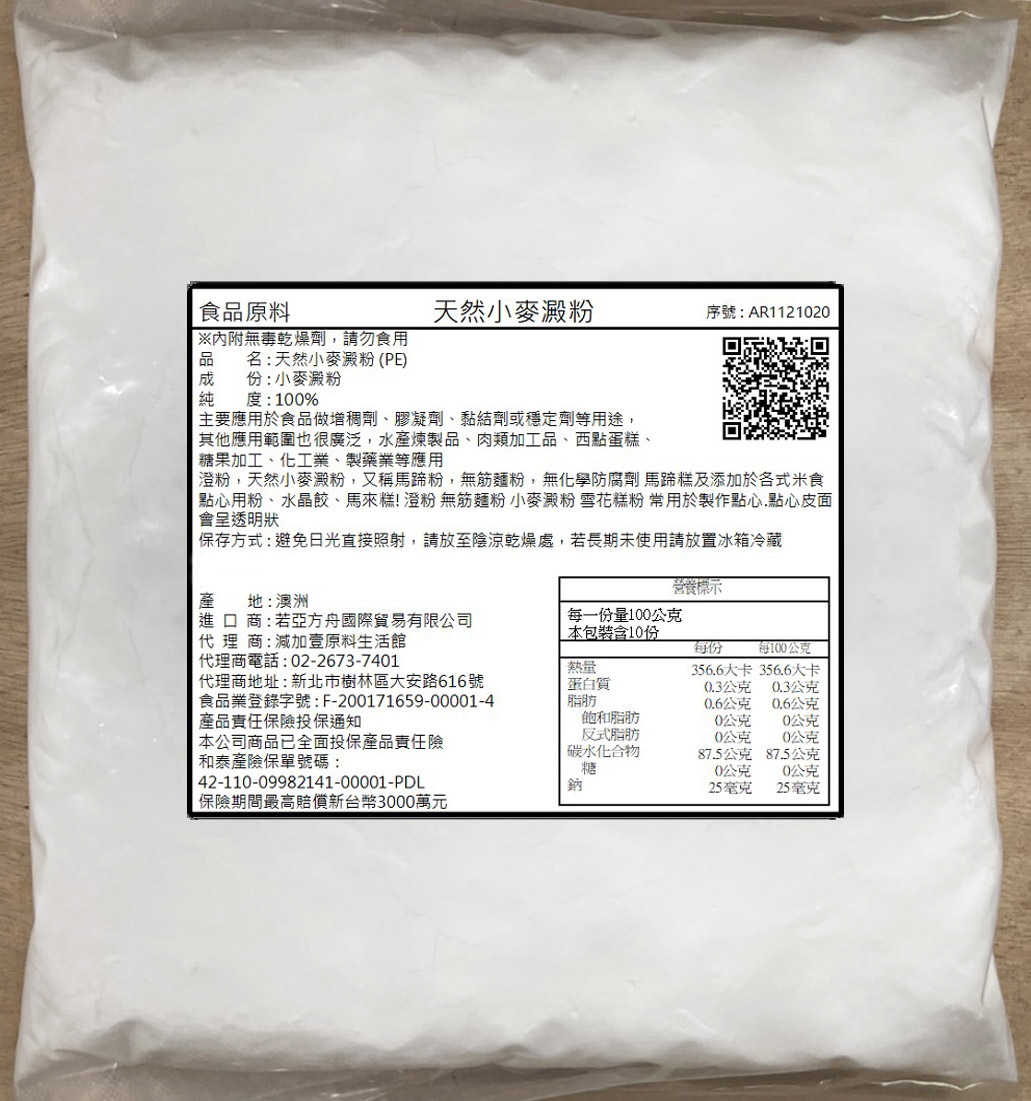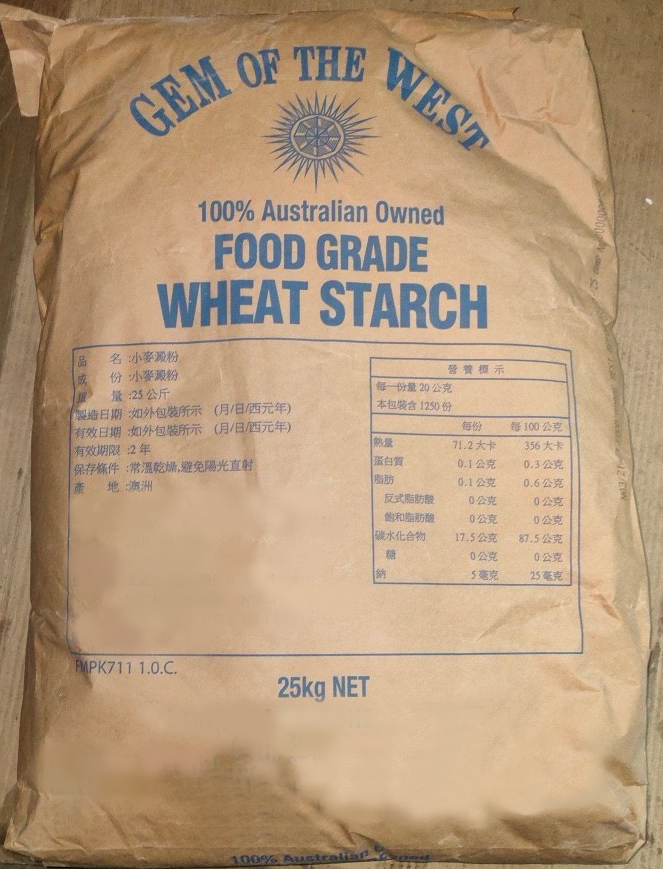 又稱澄粉、天然小麥澱粉、馬蹄粉、無筋麵粉。