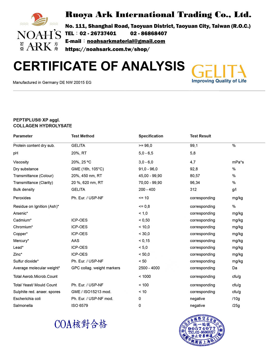 品名:100% 活性胜肽水解豬膠原蛋白 (無腥味) 隨身包 5g (正負0.1g)