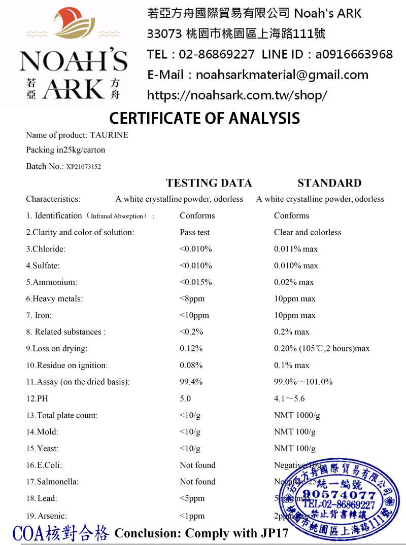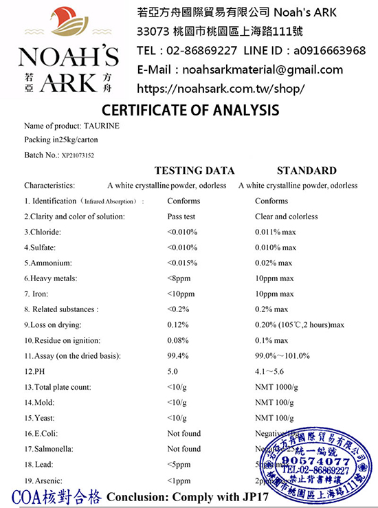 牛磺酸(Taurine)是一種非必需胺基酸,