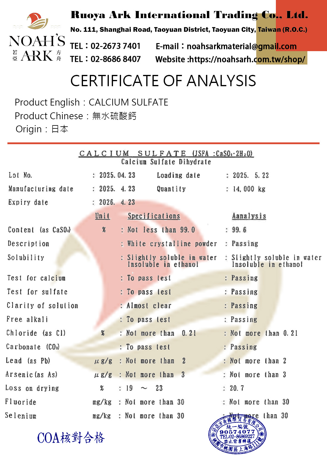 *無水硫酸鈣20公斤原包&二水硫酸鈣25公斤原包需較長備貨日7天*