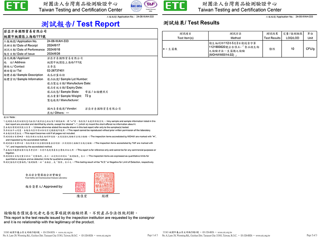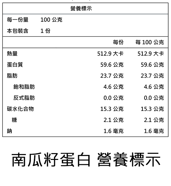 成分:南瓜籽蛋白、麥芽糊精