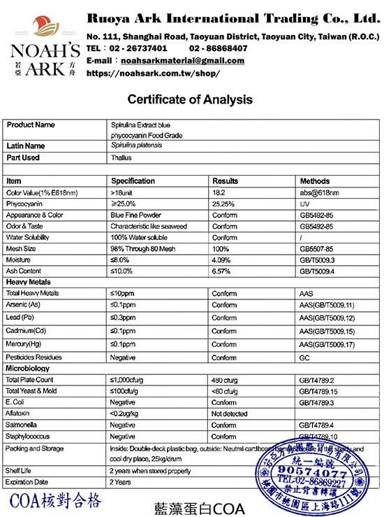 藍藻中的藻藍素是極富高價值的營養成分並具有抗氧化作用,