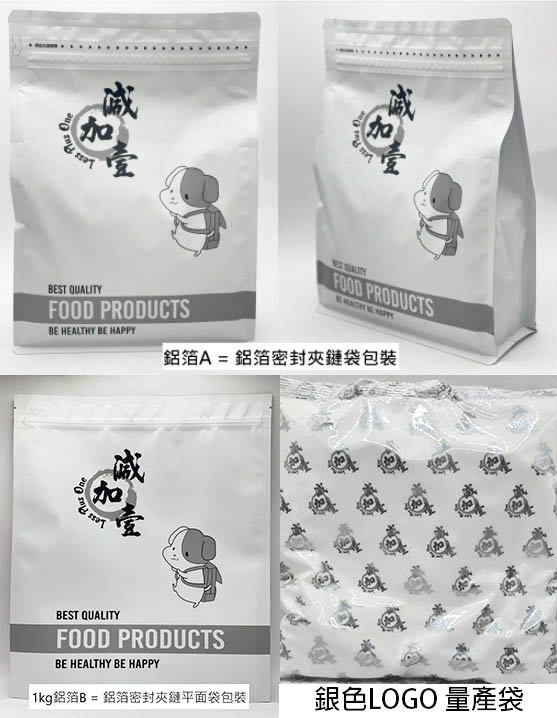 量A = 白底黑色連續LOGO的PE袋包裝,500g*2附上一個鋁箔A空袋