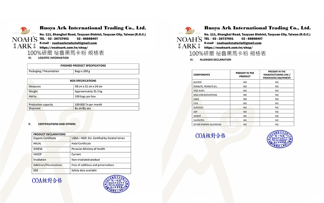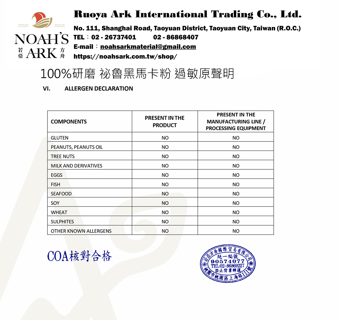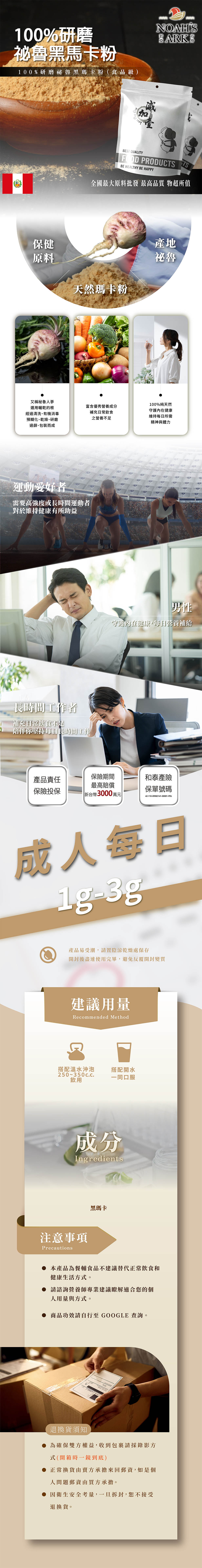 品名:100%研磨 祕魯黑馬卡粉 (食品級)