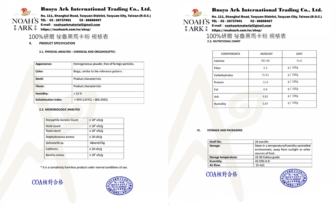 選用曬乾的根,經過清洗、有機消毒、預糊化、乾燥、研磨、過篩、包裝而成。