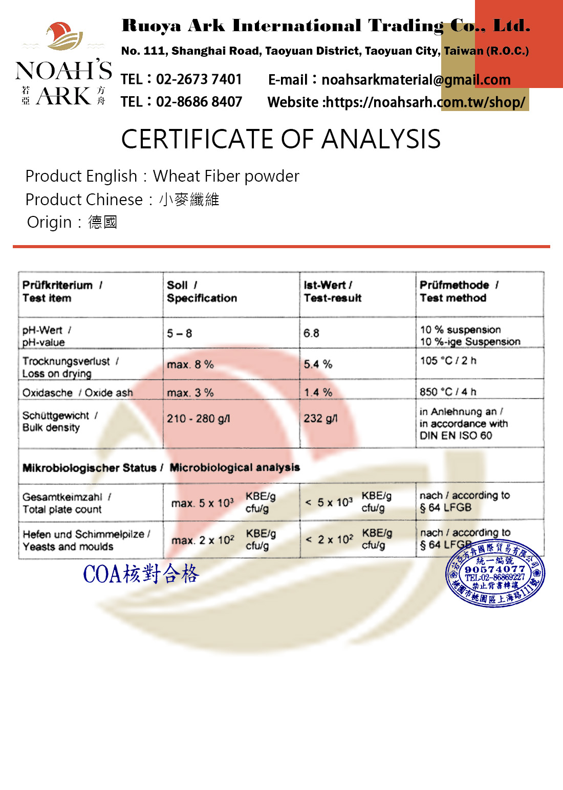 應用範圍:麵包、餅乾、加工肉類、素肉、營養補充劑、增添烘焙成品膳食纖維