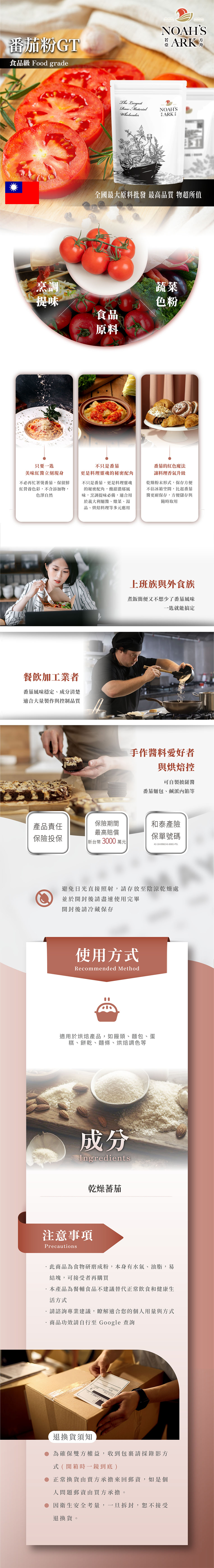 ※ 番茄粉屬於容易結塊原料,外觀會是一塊一塊的是正常的唷,敲一敲、壓一壓就可以使用了。