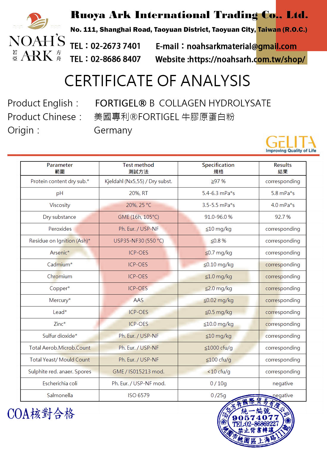 品名:美國專利®FORTIGEL牛膠原蛋白粉