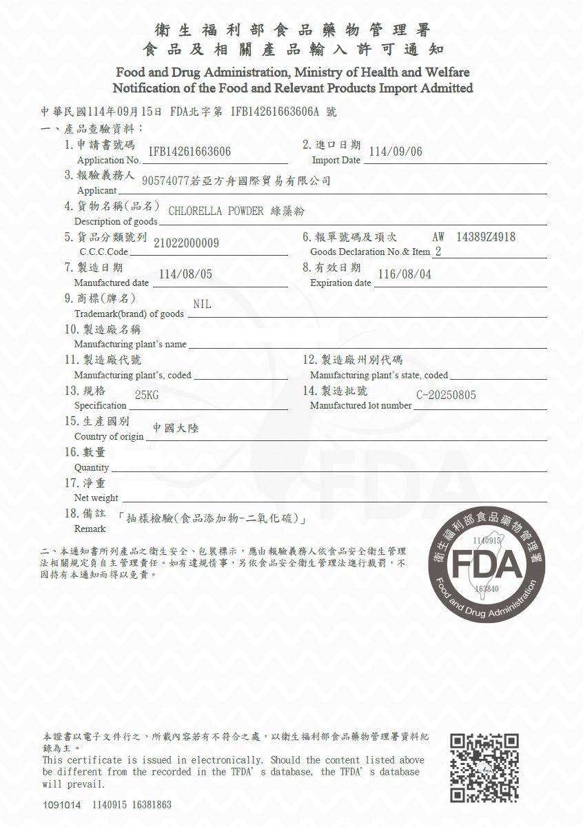 品名 : 蛋白核小球藻 (綠藻粉)