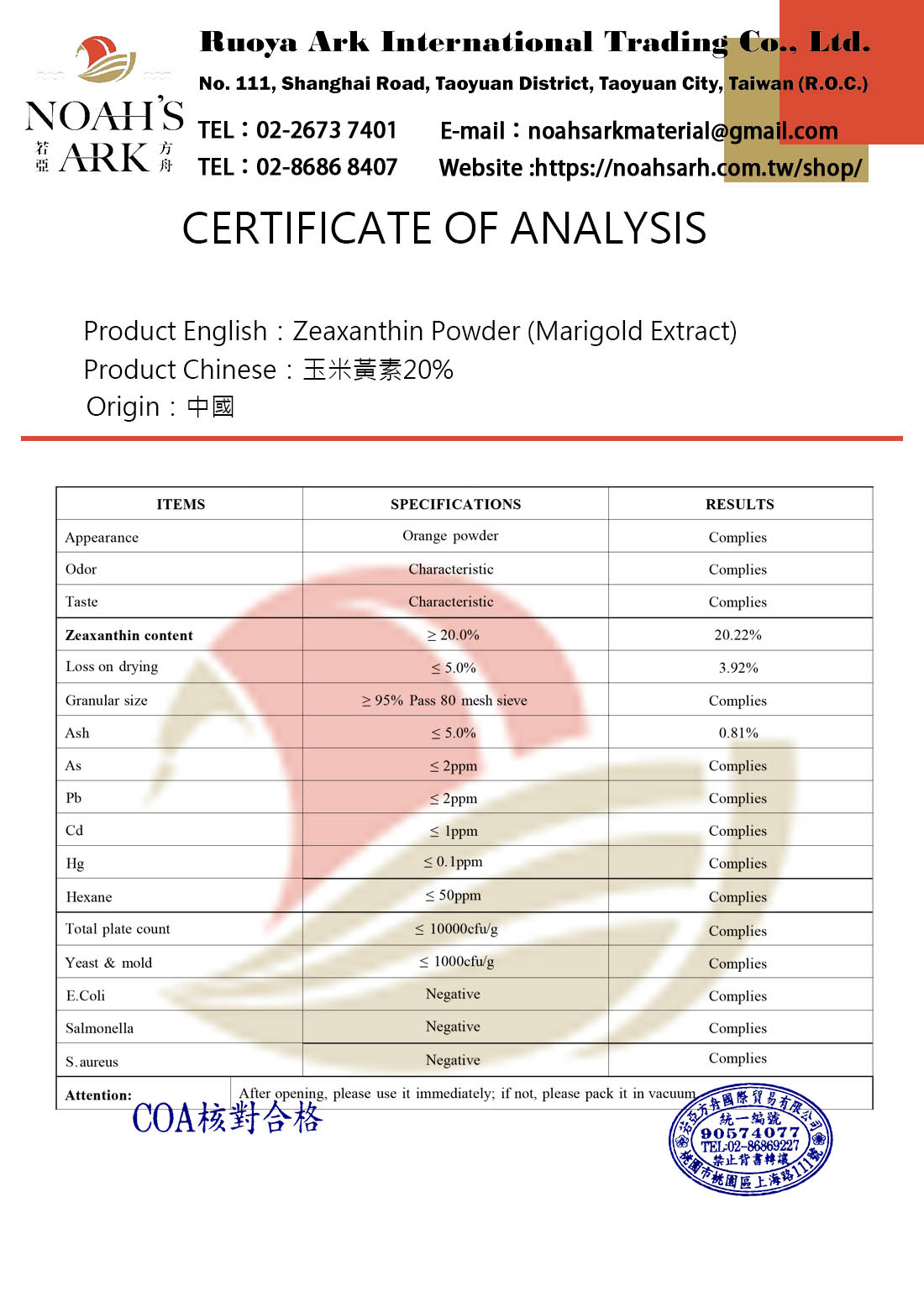 英文名:Zeaxanthin Powder (Marigold Extract)