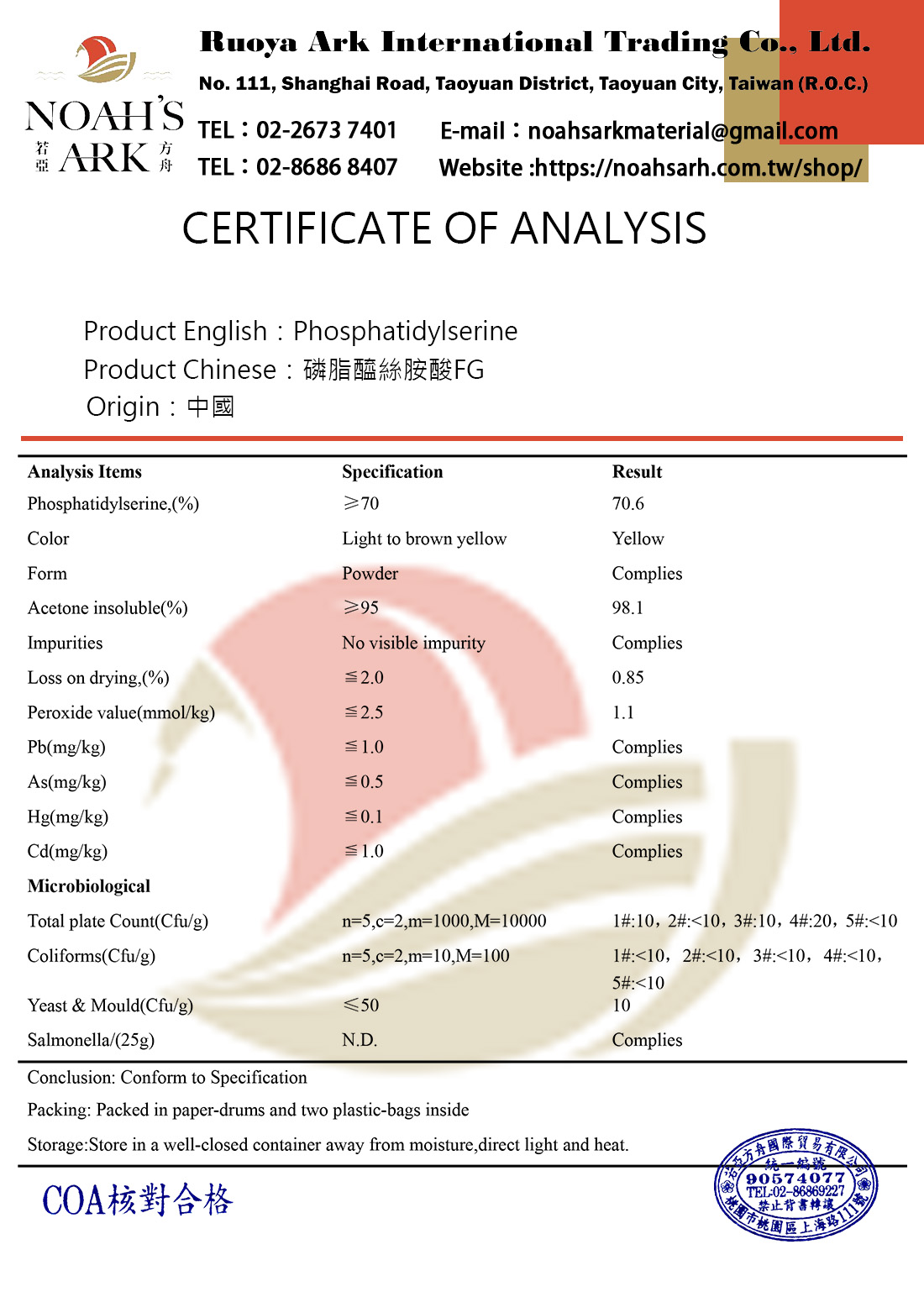 規格:70%,1000mg有700mg的 PS(磷脂醯絲胺酸)