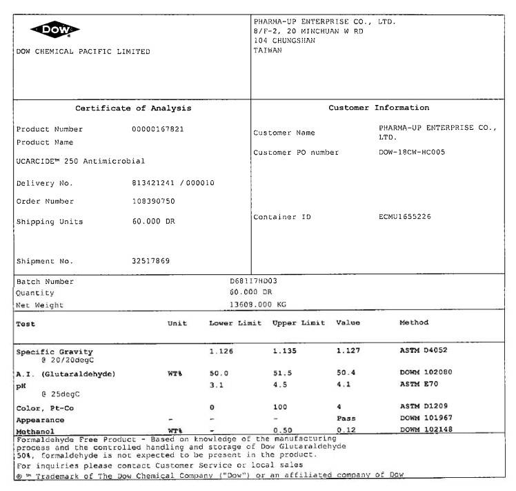 品名:戊二醛 有機碳 (化工原料)