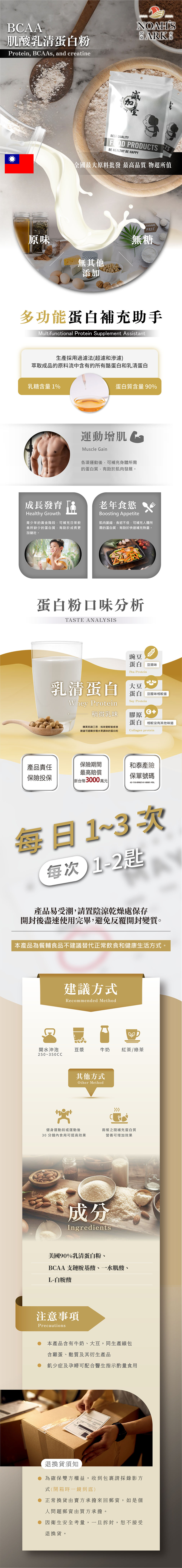 成分:美國90%乳清蛋白粉、BCAA 支鏈胺基酸、一水肌酸、L-白胺酸