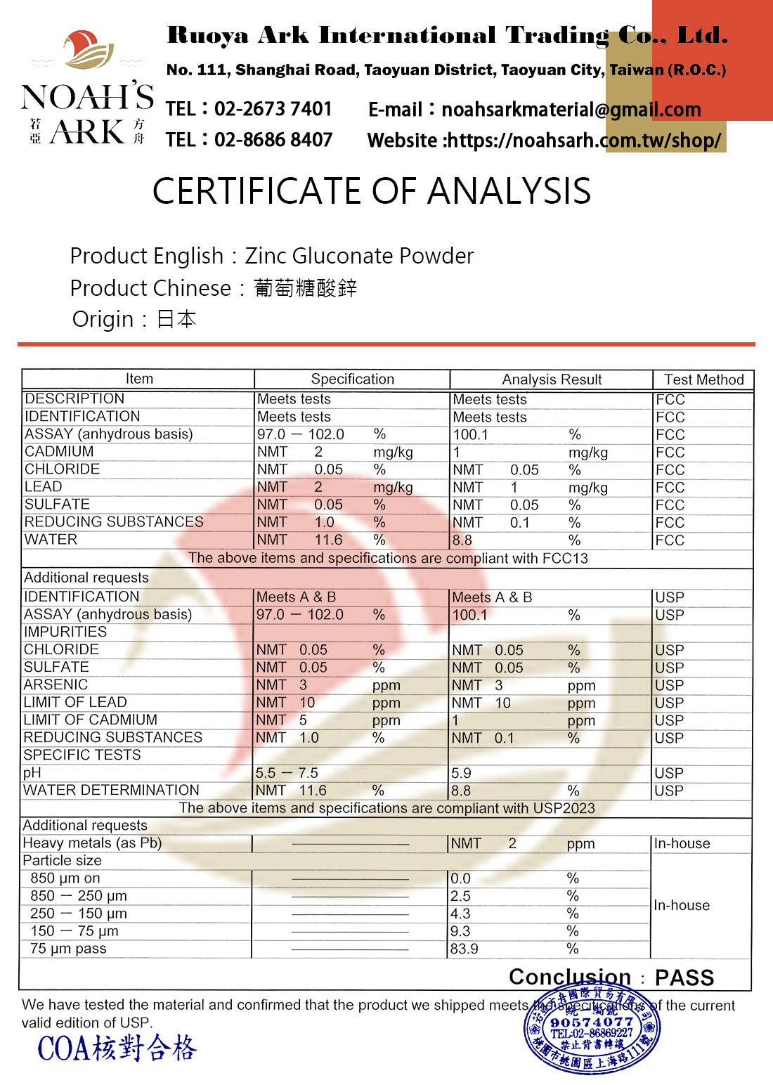 規格:100%葡萄糖酸鋅