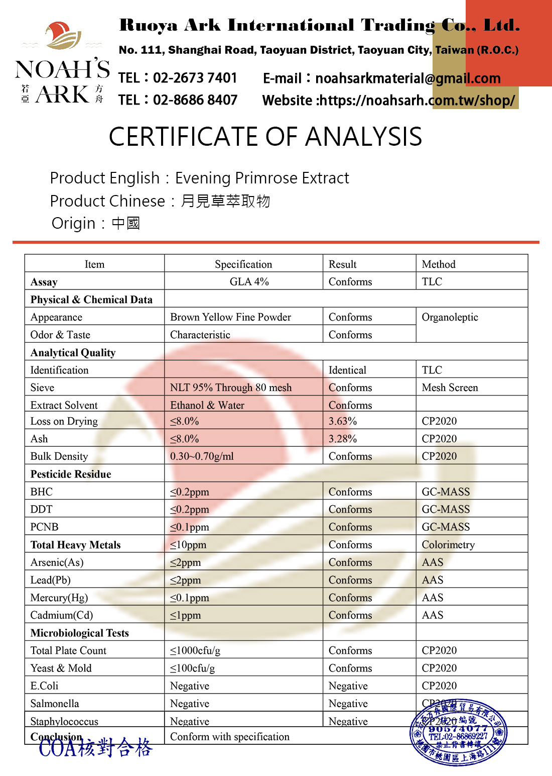 月見草含有大量的必須脂肪酸以及GLA:γ-亞麻油酸。