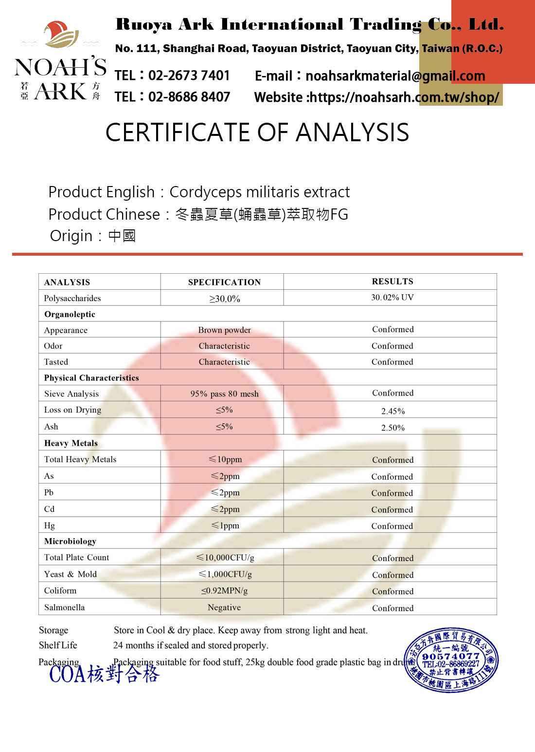 品名:冬蟲夏草(蛹蟲草)萃取物FG