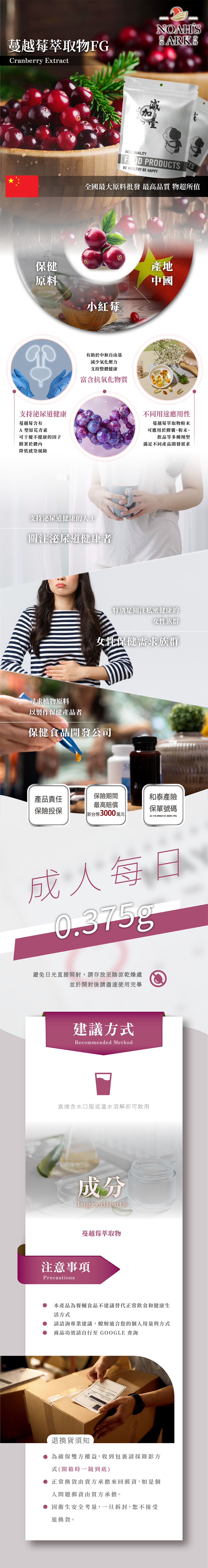 品名:蔓越莓萃取物FG