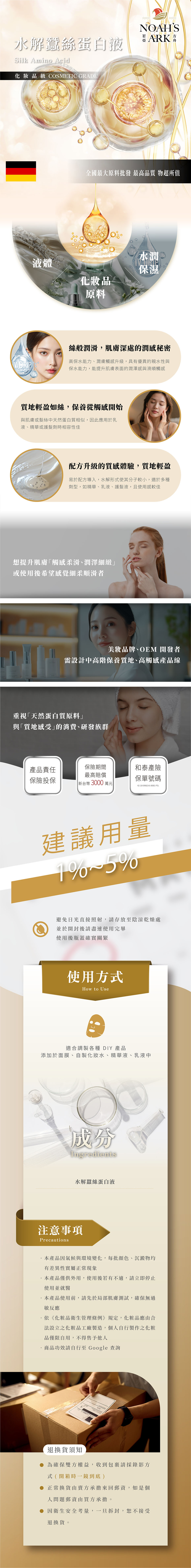 用途:適合調製各種DIY產品,添加於面膜、自製作妝水、精華液、乳液中。