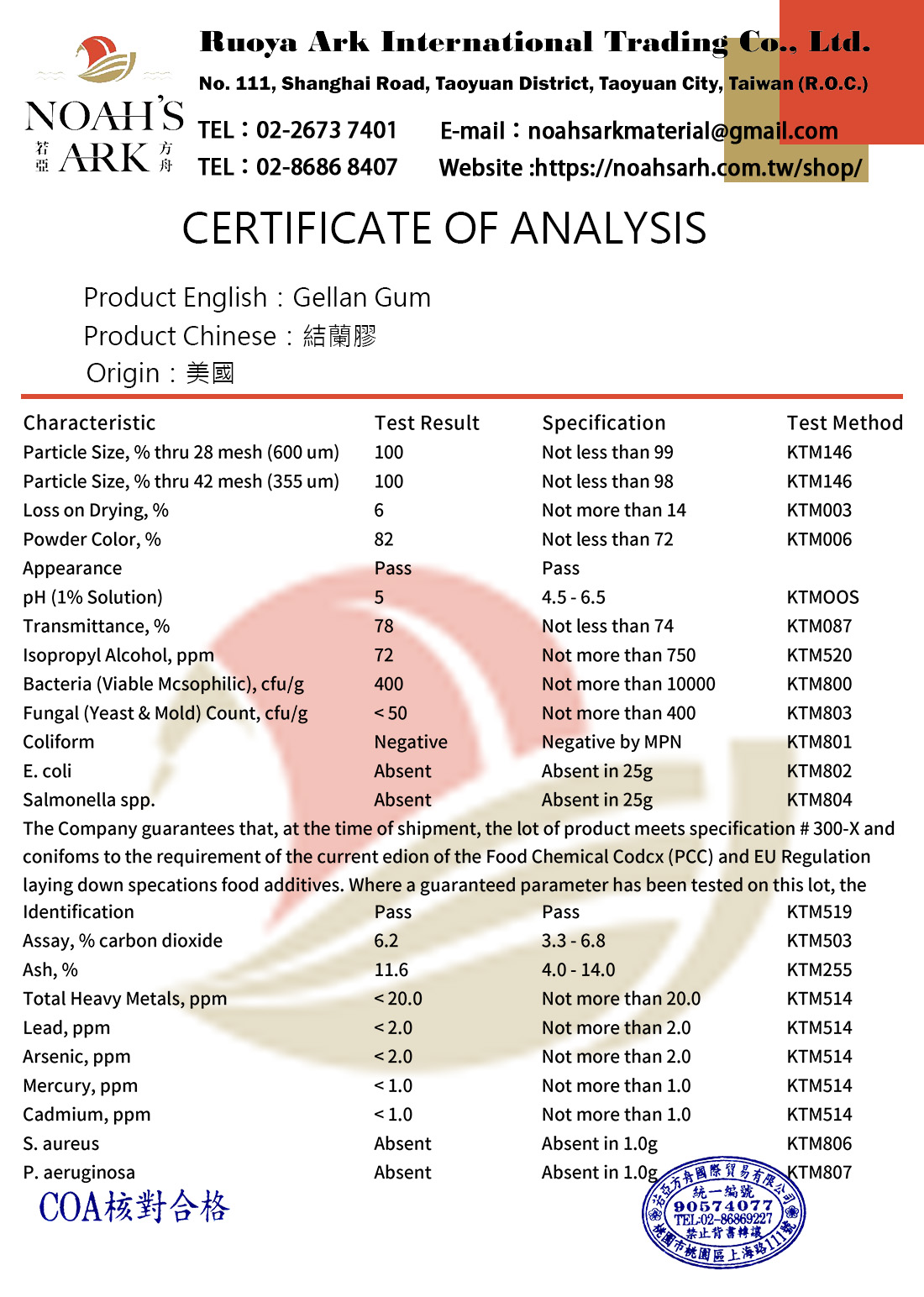 成分:結蘭膠 99.9%、阿拉伯膠 0.1%