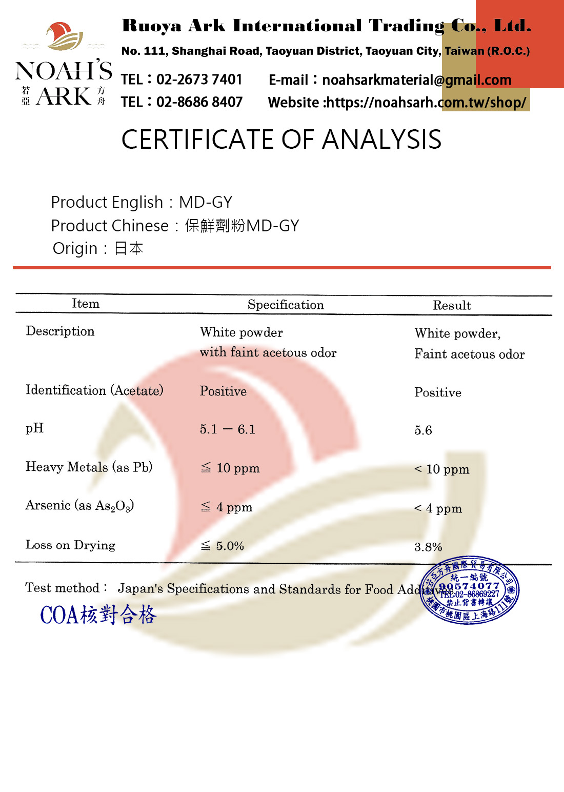 品名:保鮮劑粉 MD-GY