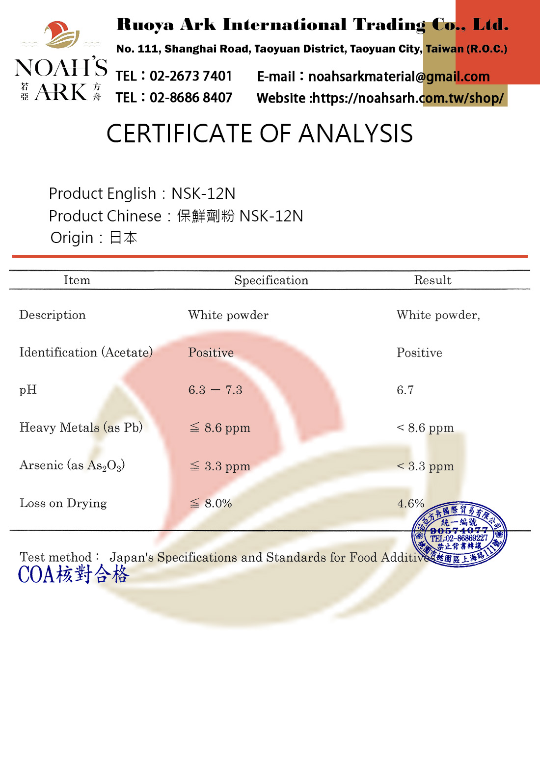 2、 1%水溶液 pH 為 6.7~6.9,呈中性,加入食品中較無酸感。