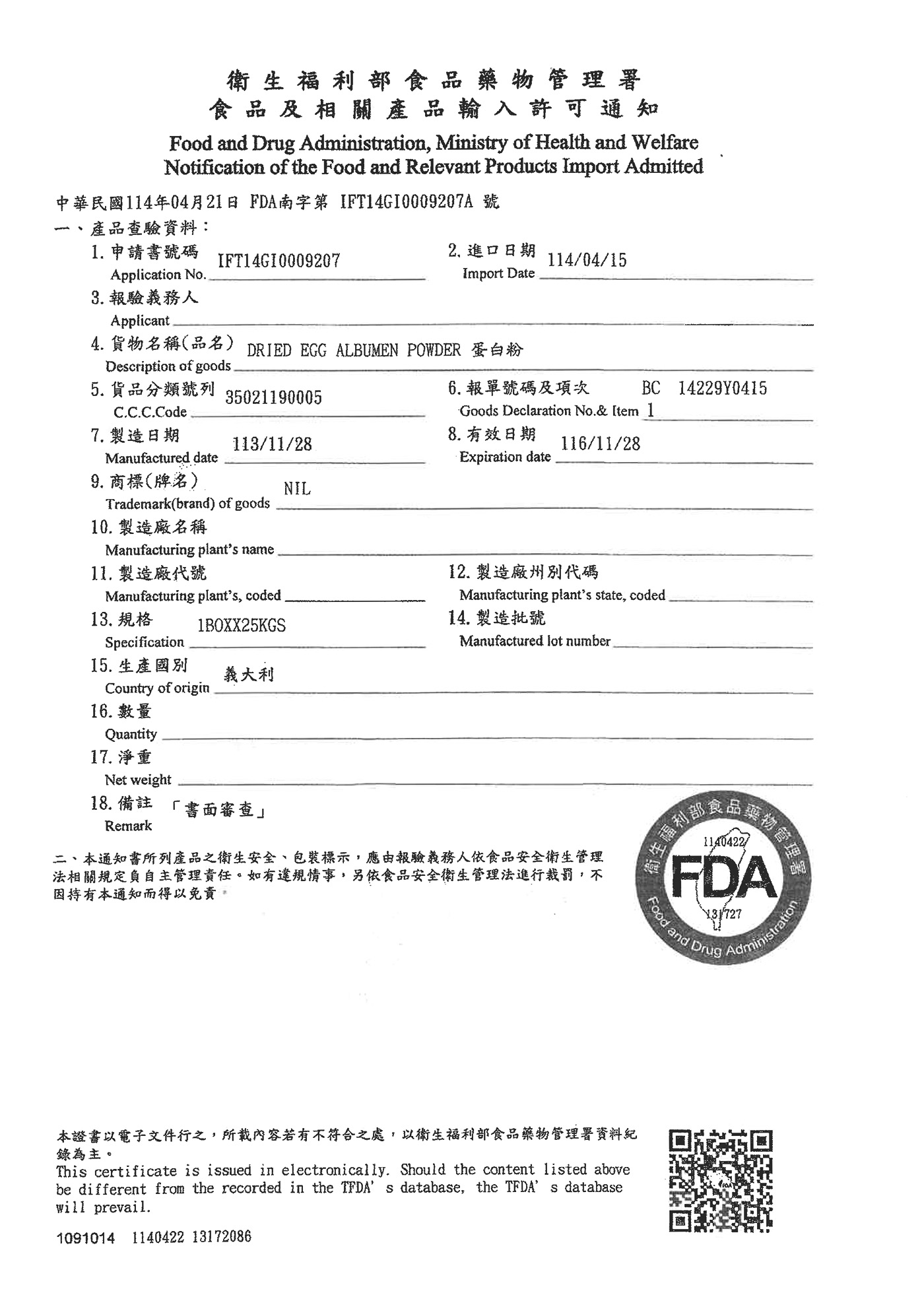 成分:雞蛋白粉