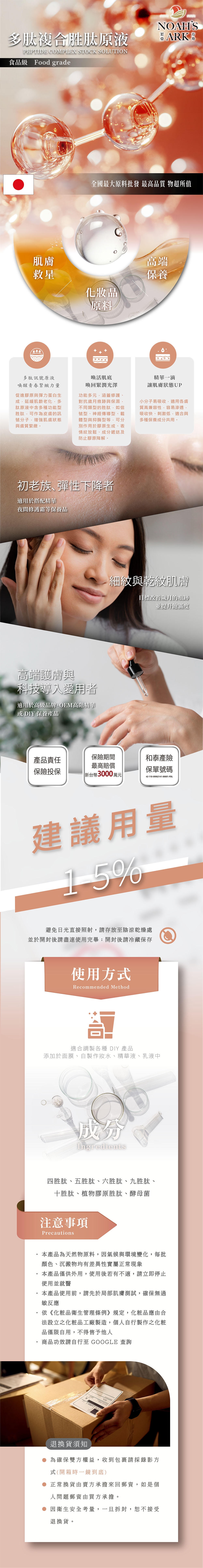 成分:四胜肽、五胜肽、六胜肽、九胜肽、十胜肽、植物膠原胜肽、酵母菌
