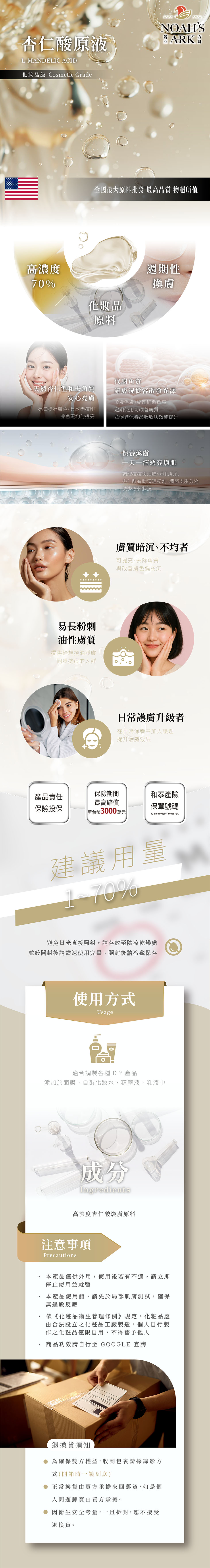 商品名稱:70% 杏仁酸原液 (化妝品級)