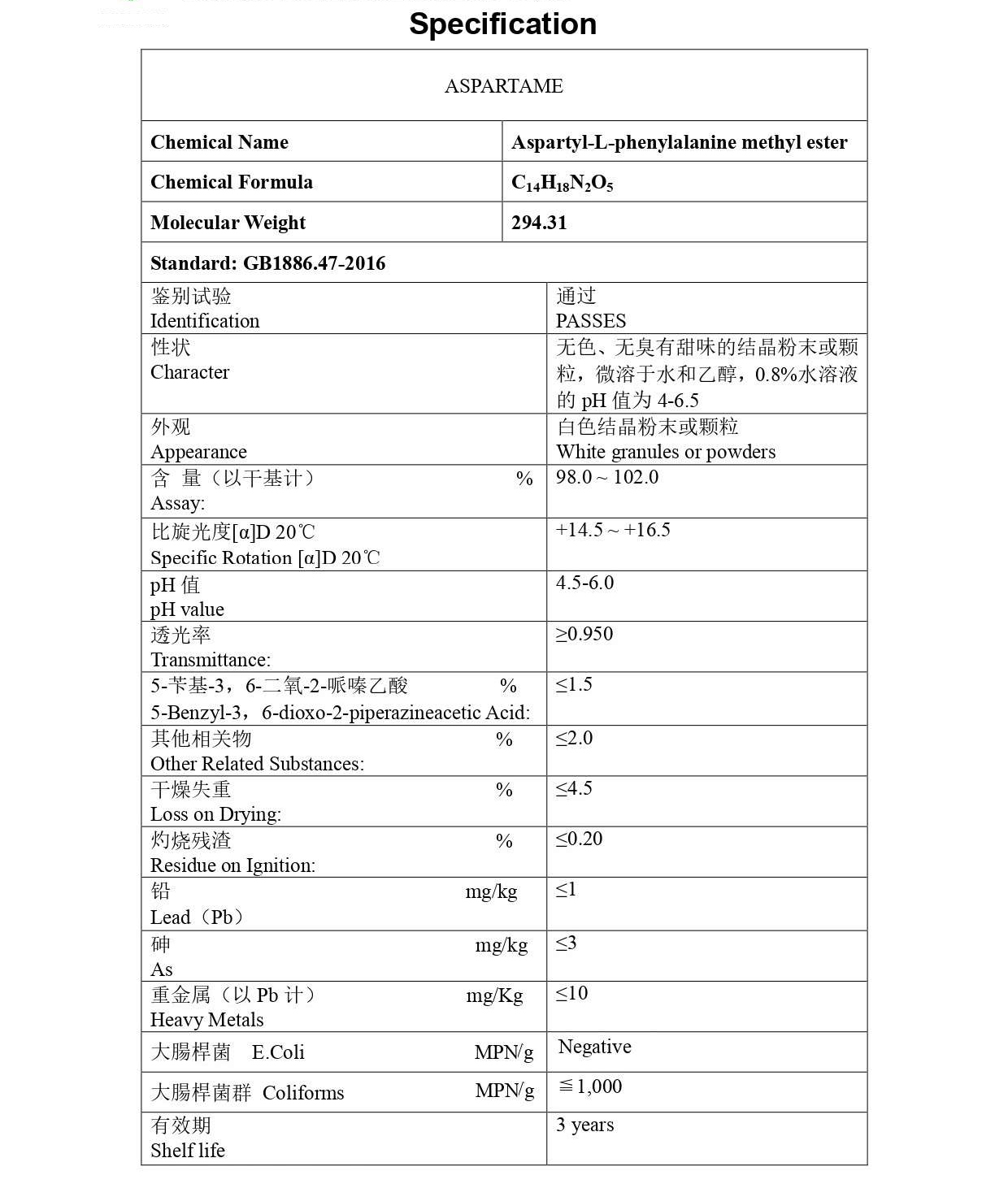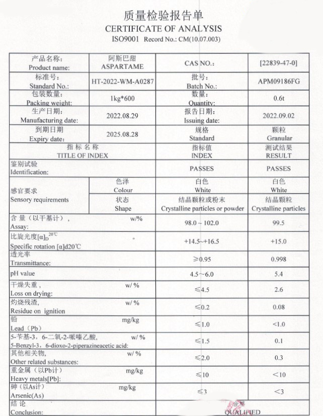 品名:阿斯巴甜 A (食品級)