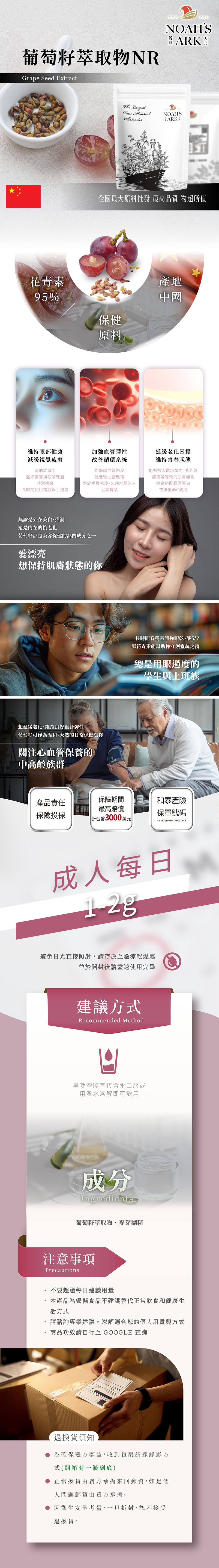 成分:葡萄籽萃取物、麥芽糊精