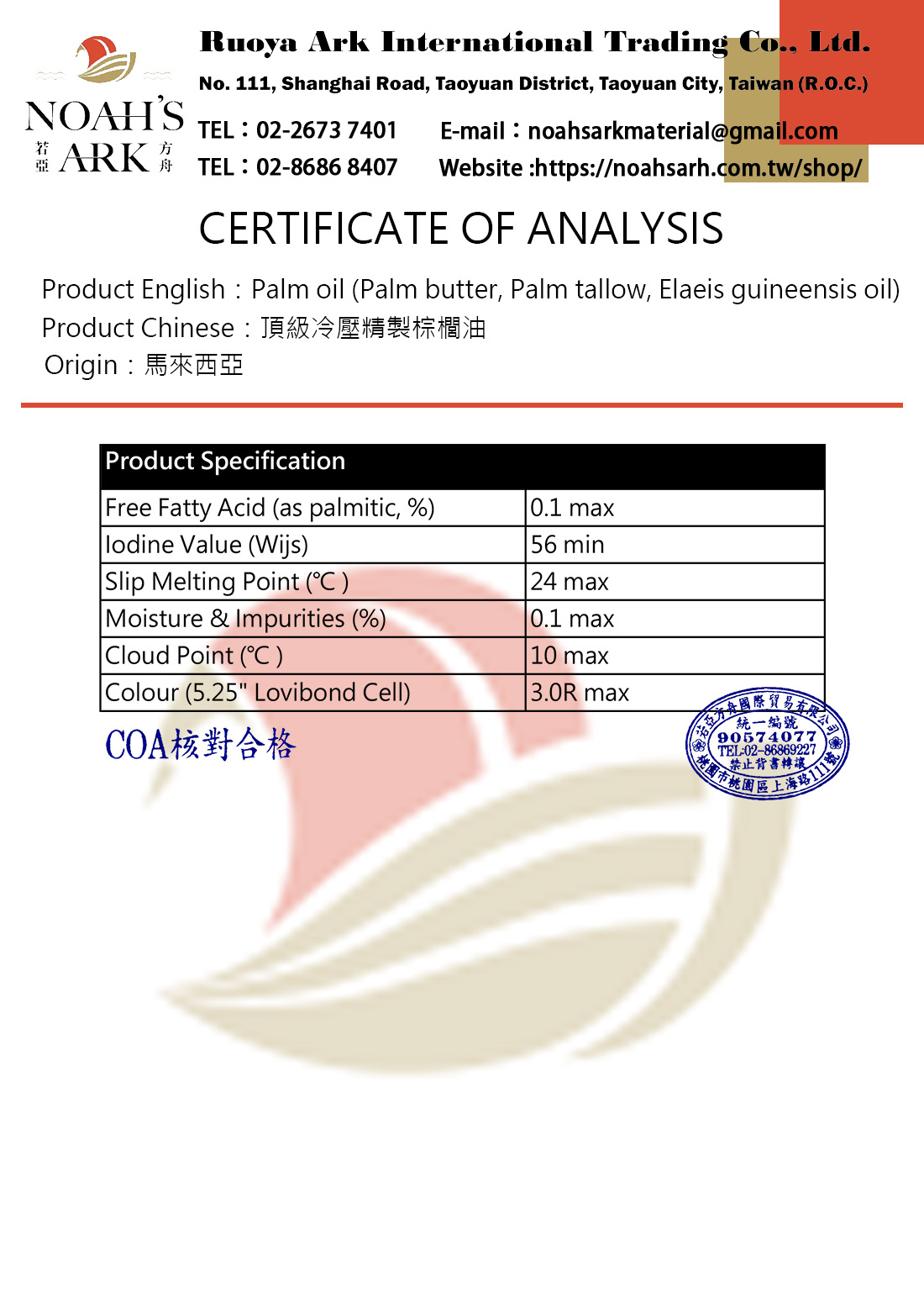 品名:頂級冷壓精製棕櫚油 (化工原料)