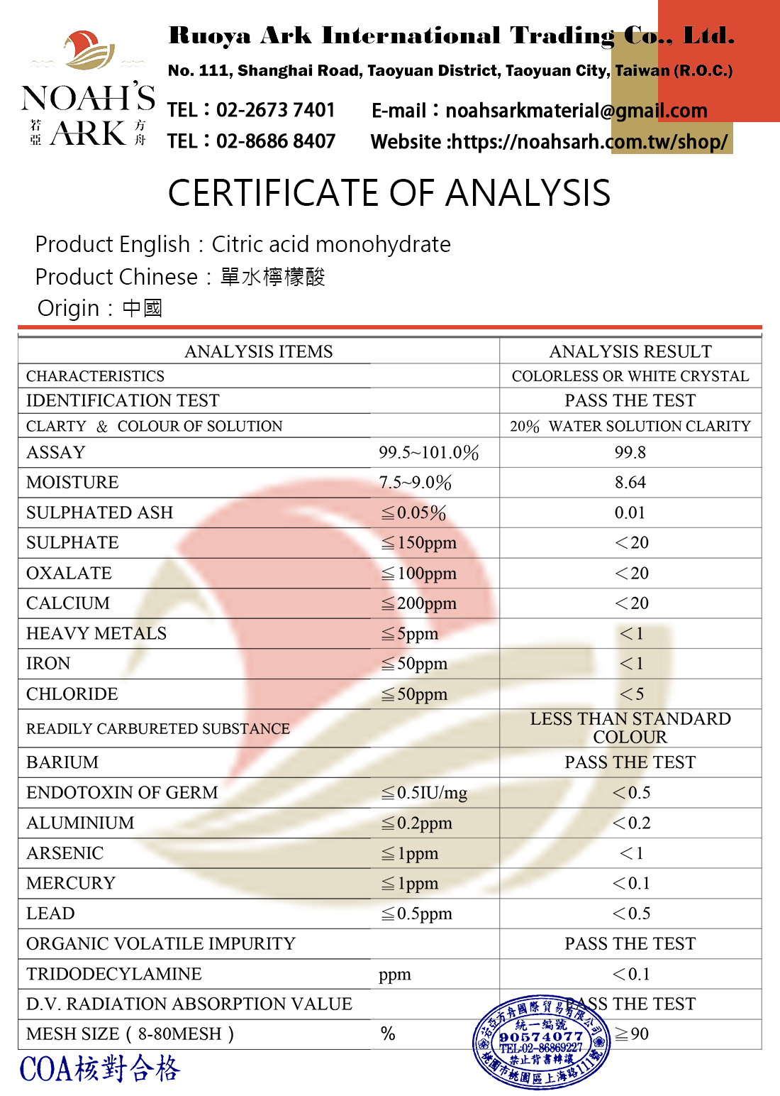 成分:Citric Acid(CITRIC AICID,MONOHYDRATE)