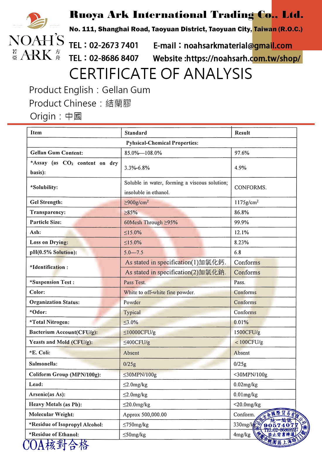 成分:結蘭膠 99.9%、阿拉伯膠 0.1%