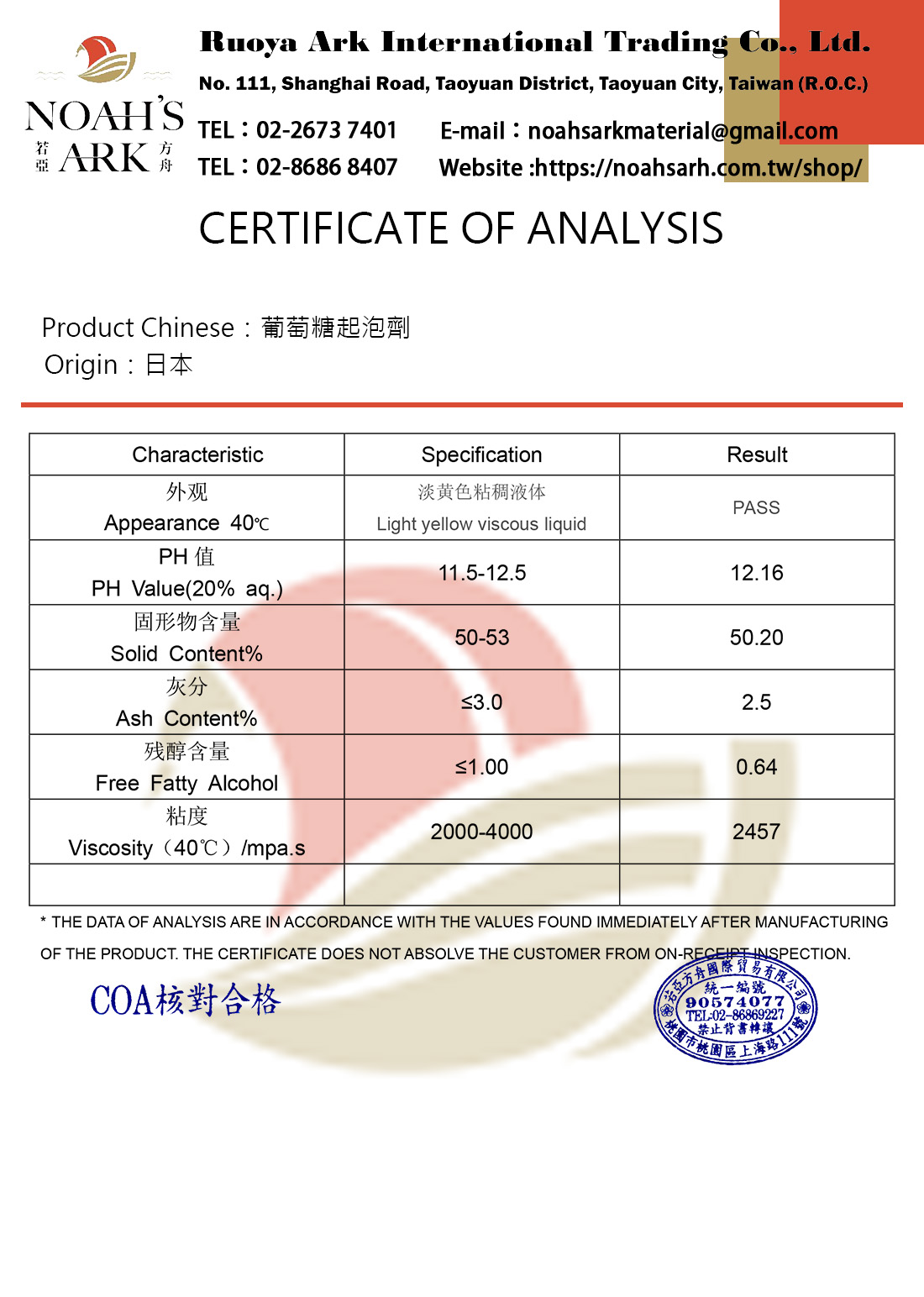 品名:APG 葡萄糖起泡劑;環保型起泡劑(生物可分解) 化工原料