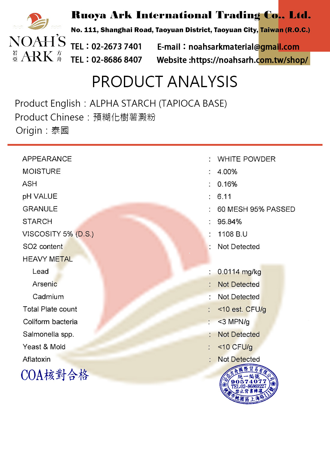 品名:預糊化樹薯澱粉 (熟粉) 食品級