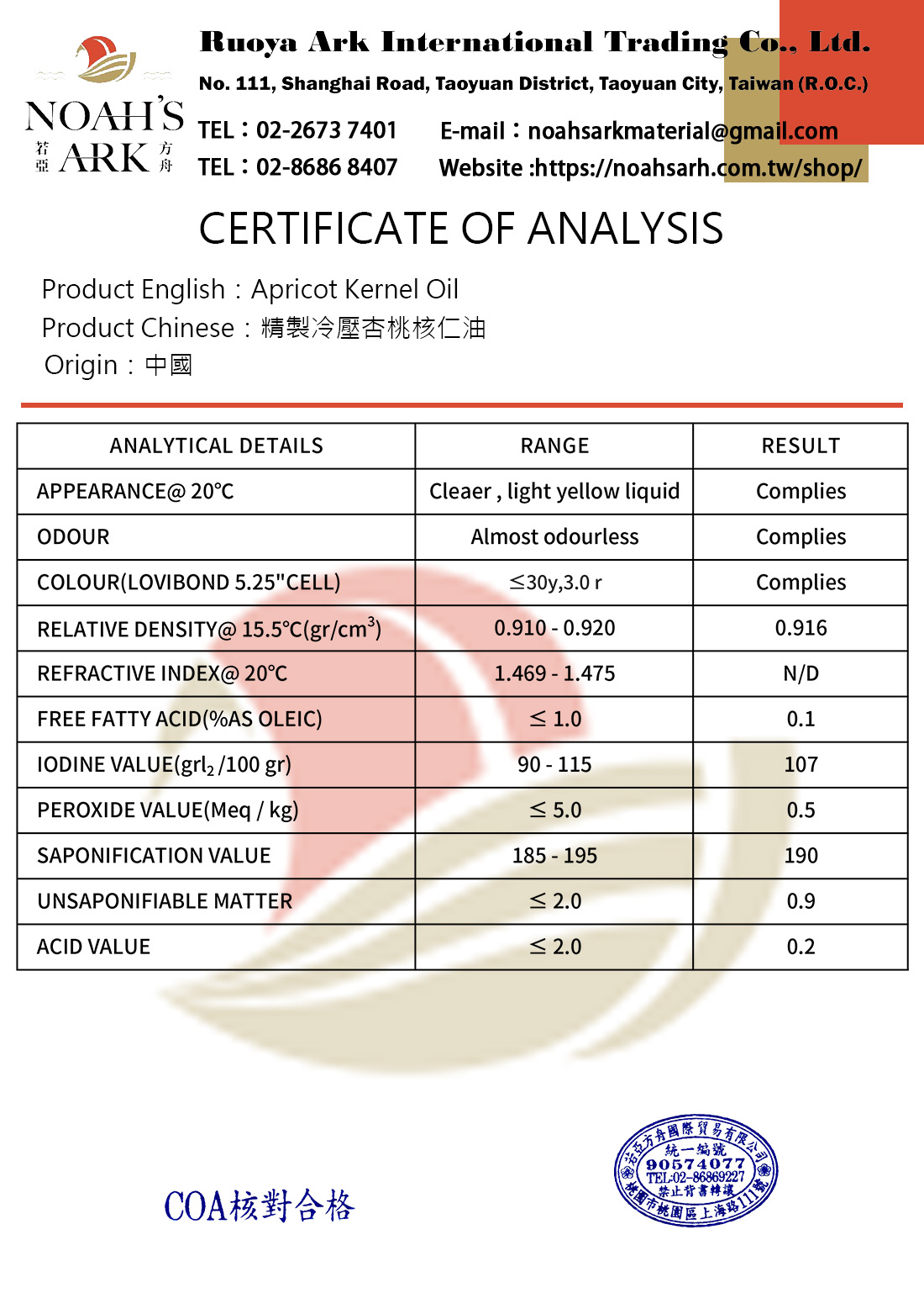 品名:精製冷壓杏桃核仁油 (化妝品級)